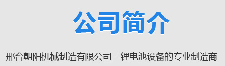 邢臺朝陽機械制造有限公司是新能源裝備領域的璀璨之星,位于河北省邢臺市信都區會寧鎮(邢臺會寧綜合物流聚集地) 70 號,自2006 年成立以來,歷經 20 年砥礪奮進,已成長為新能源裝備領域的行業領軍者。公司占地 100 余畝,是集鋰離子電池極片... [更多>>]